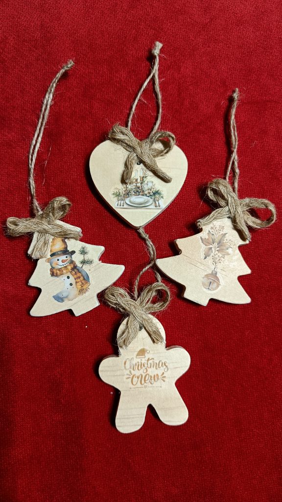 TARJETAS DE MADERA DECORADAS CON DÉCOUPAGE, Y ADORNOS DE MASA. ALGUNAS ESTÁN REALZADAS CON PAN DE ORO. PERFECTAS PARA COLGAR EN CUALQUIER RINCÓN DE LA CASA POR NAVIDAD. TAMBIÉN SON UN PERFECTO REGALO PARA GRUPOS DE AMIGOS Y PARA EL AMIGO INVISIBLE.