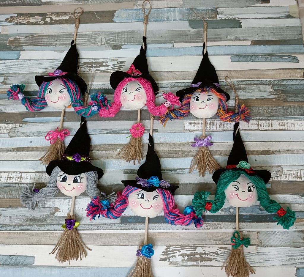 BRUJITAS SOBRE ESCOBA PARA HALLOWEEN