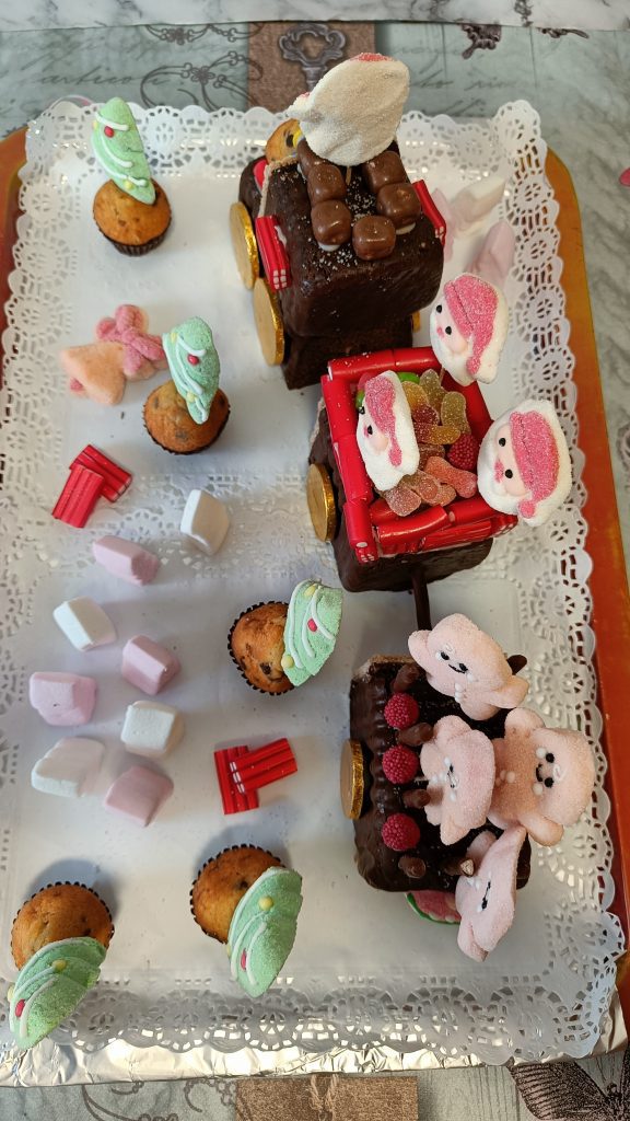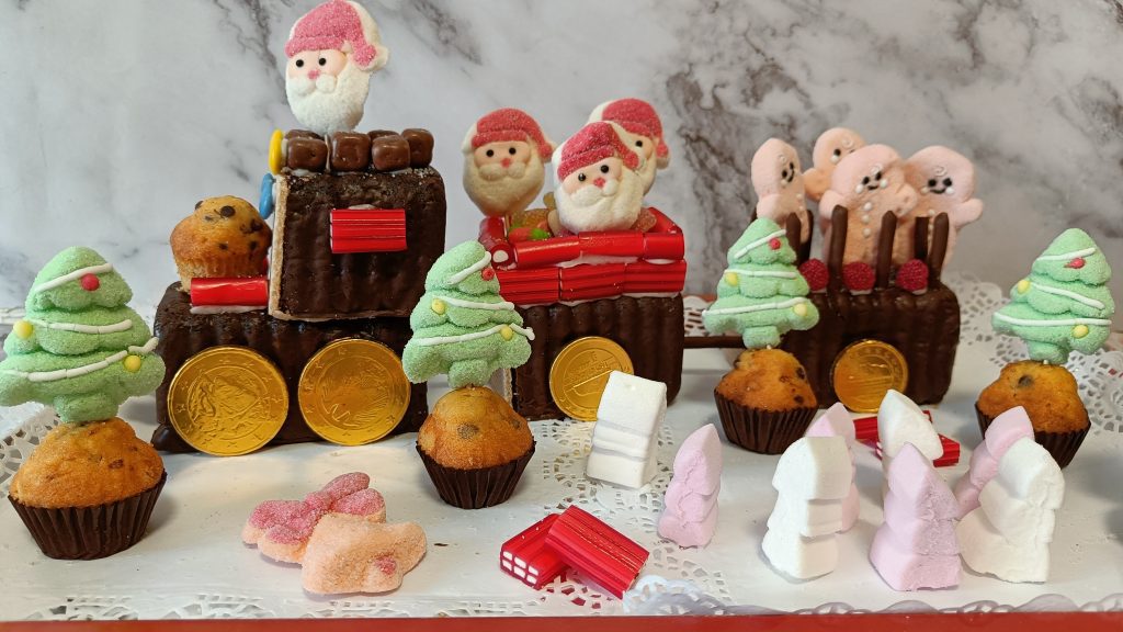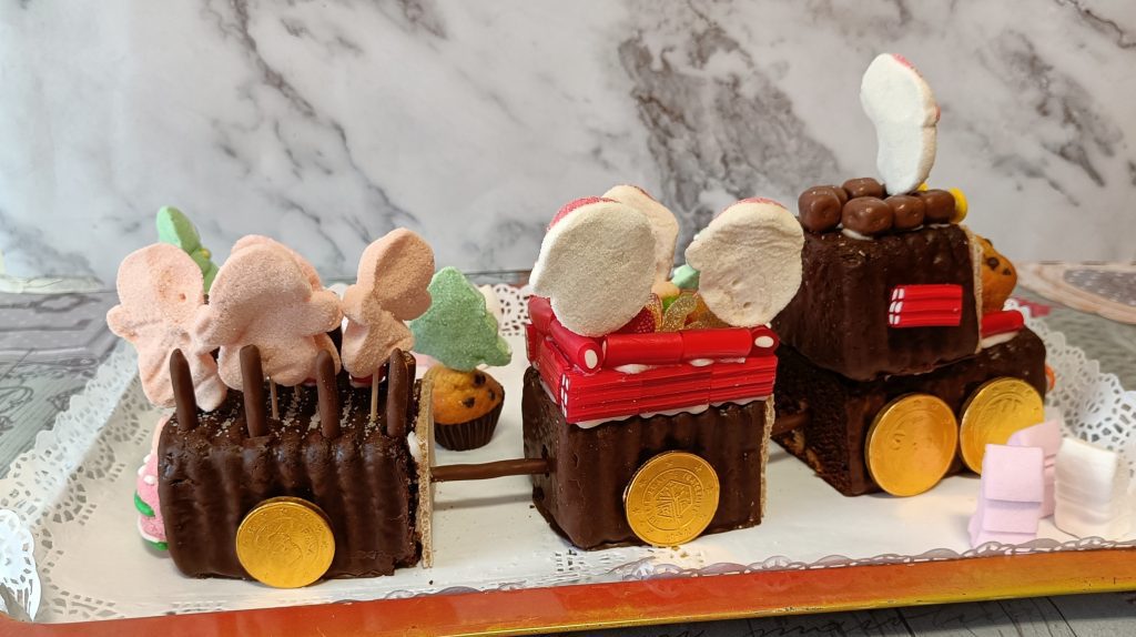 ÉSTE TIPO DE TREN DE GOMINOLAS, FUE APODADO CHÚ-CHÚ-TREN DE GOMINOLAS POR MIS HIJOS HACE UN MONTÓN DE AÑOS, CUANDO LO HICE POR PRIMERA VEZ POR SUS CUMPLEAÑOS. HE DE ACLARAR QUE LOS 3 CUMPLEN AÑOS EN LAS MISMAS FECHAS CON AÑOS DE DIFERENCIA, Y POR ESO LA FIESTA SIEMPRE FUE CONJUNTA. ¡AÚN RECUERDO LAS CARAS ALUCINADAS DE MIS HIJOS Y DE LOS NIÑOS INVITADOS A LA FIESTA!