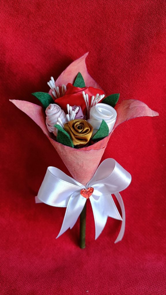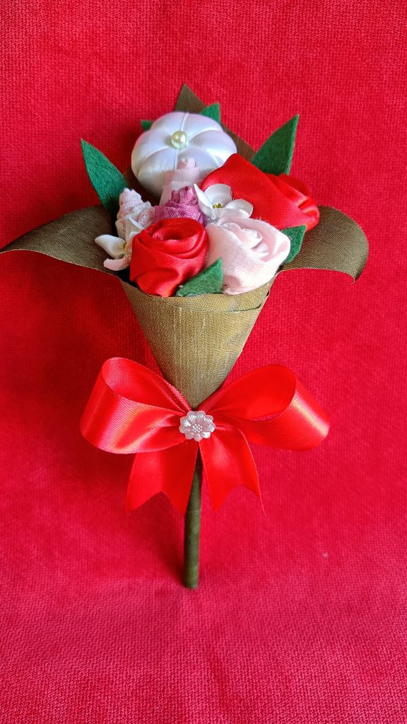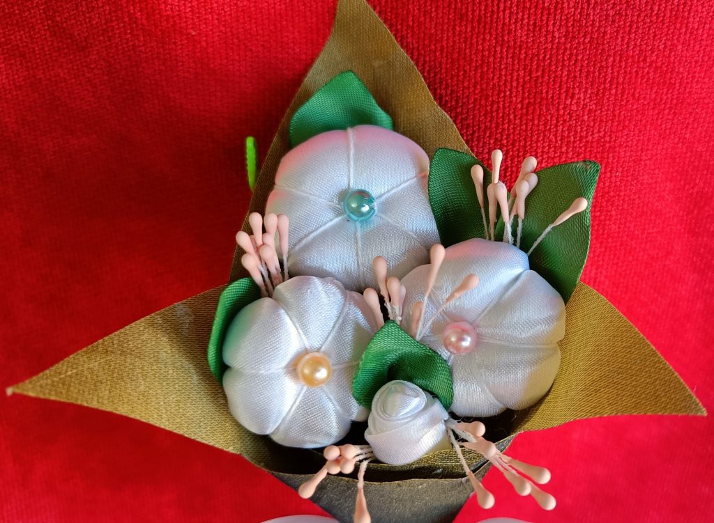 EL CUCURUCHO ES DE TELA ENGOMADA Y DOBLADA EN FORMA DE ORIGAMI DE UN MODO ESPECIAL.