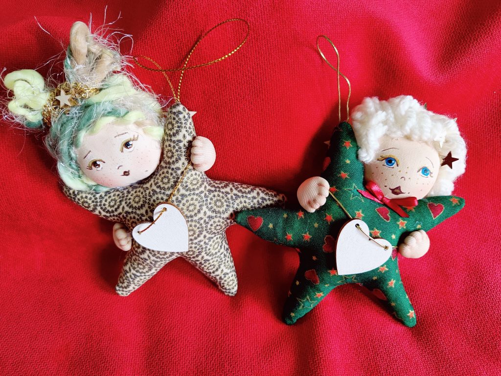 SON 4 ABETOS DIFERENTES, PARA COLGAR, REALIZADOS EN TELA Y DOBLADOS CON EL ARTE ORIGAMI PARA COLGAR DE LA PUERTA DE ENTRADA DE LA CASA, O DE CUALQUIER LUGAR EN CASA.