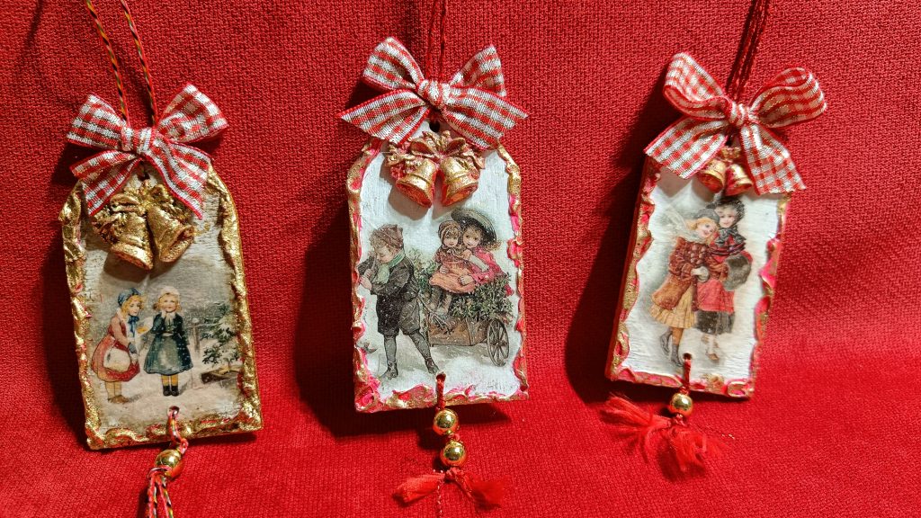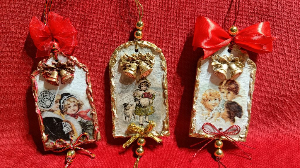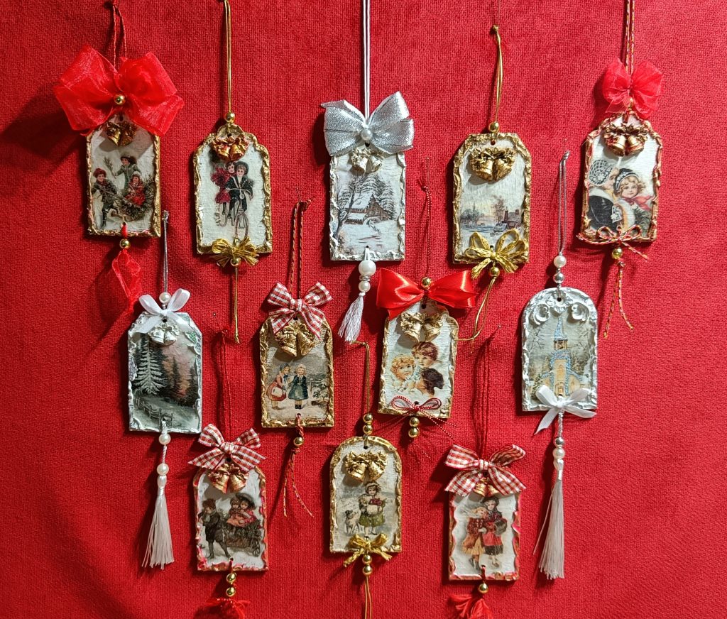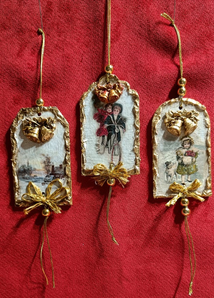 TARJETAS DE MADERA DECORADAS CON DÉCOUPAGE, Y ADORNOS DE MASA. ALGUNAS ESTÁN REALZADAS CON PAN DE ORO. PERFECTAS PARA COLGAR EN CUALQUIER RINCÓN DE LA CASA POR NAVIDAD. TAMBIÉN SON UN PERFECTO REGALO PARA GRUPOS DE AMIGOS Y PARA EL AMIGO INVISIBLE.
